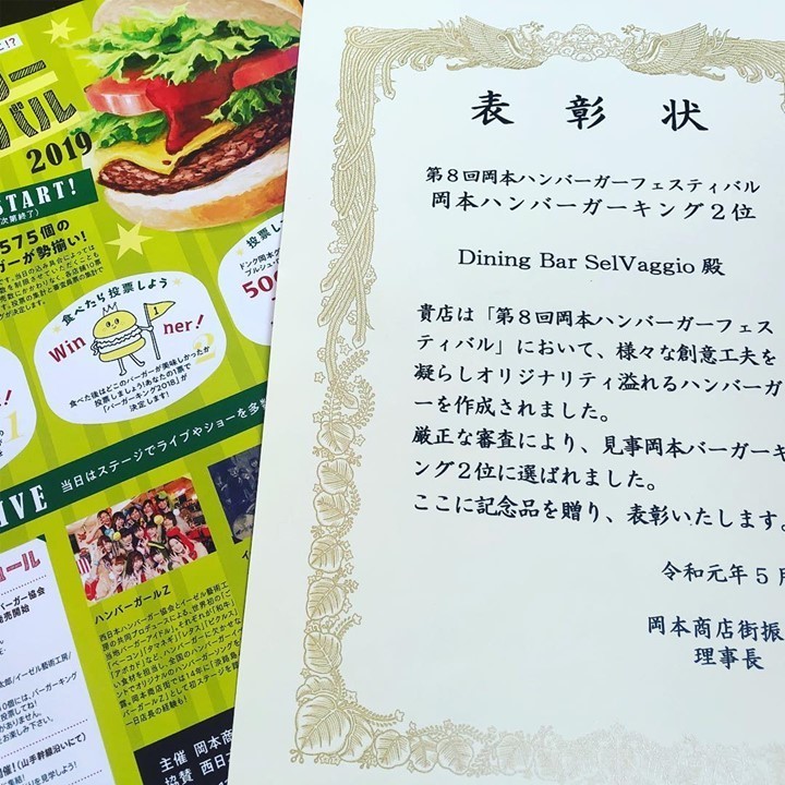 第8回岡本ハンバーガーフェスティバルでSelVaggio 第2位をいただきました!!