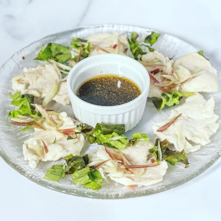 高タンパク低カロリーの鶏胸肉を湯引きしてお野菜と一緒にカルパッチョ仕立てで☆