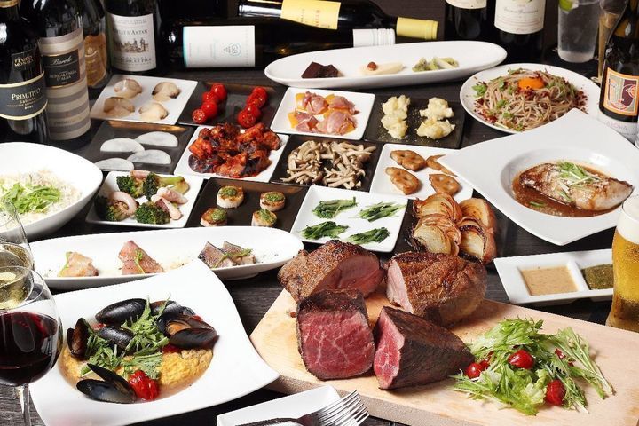 忘年会、宴会に!【120分飲み放題付】W牛の塊ロースト!圧巻前菜12種盛つき♪満足宴会コース 全8品 5000円