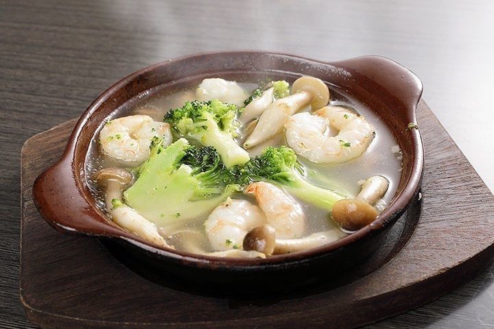 海老やキノコ、ブロッコリーはもちろん、ベーコンやムール貝、ホタテ、その他その時期の食材等から二種類、もしくは三種類選んでいただけます☆