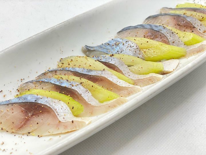 シャキシャキのセロリとしっとりと脂ののった特製しめ寒鯖の相性は抜群♪