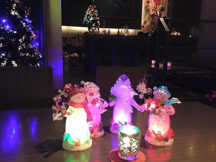 照明を落とした店内でキャンドルとツリーがキラキラ輝く幻想的な空間♪