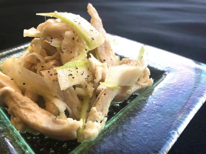 しっとり火を通した鶏肉とシャキシャキのセロリを特製のソースで和えた一品です☆