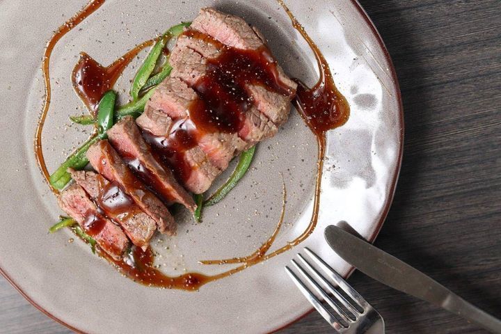 レアに焼き上げた牛モモ肉とシャキシャキのピーマンに、アニス香るイタリアのお酒ガリアーノを風味付けに使った特製オイスターソースで♪