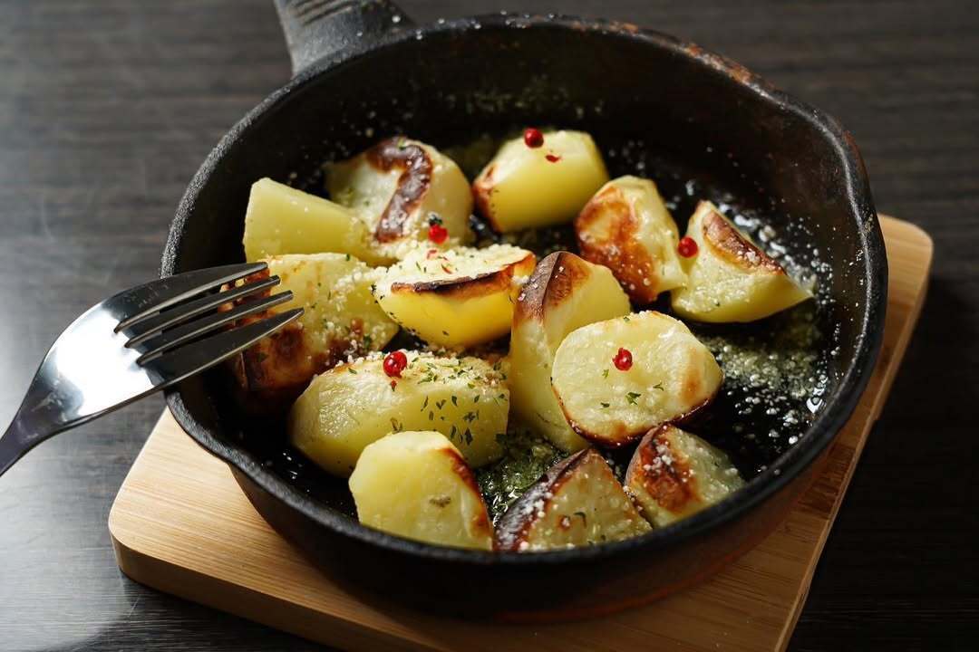 ハーブを効かせたオイルでカリッと仕上げたジャガイモにコクのある特製バター、パルミジャーノで仕上げた特製じゃがバターです!