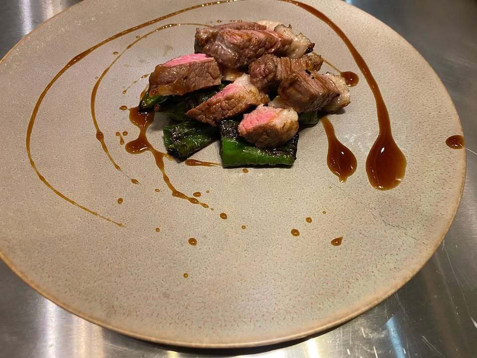 #ブラックアンガス牛リブロースの窯焼きガリアーノ香るチンジャオロース風