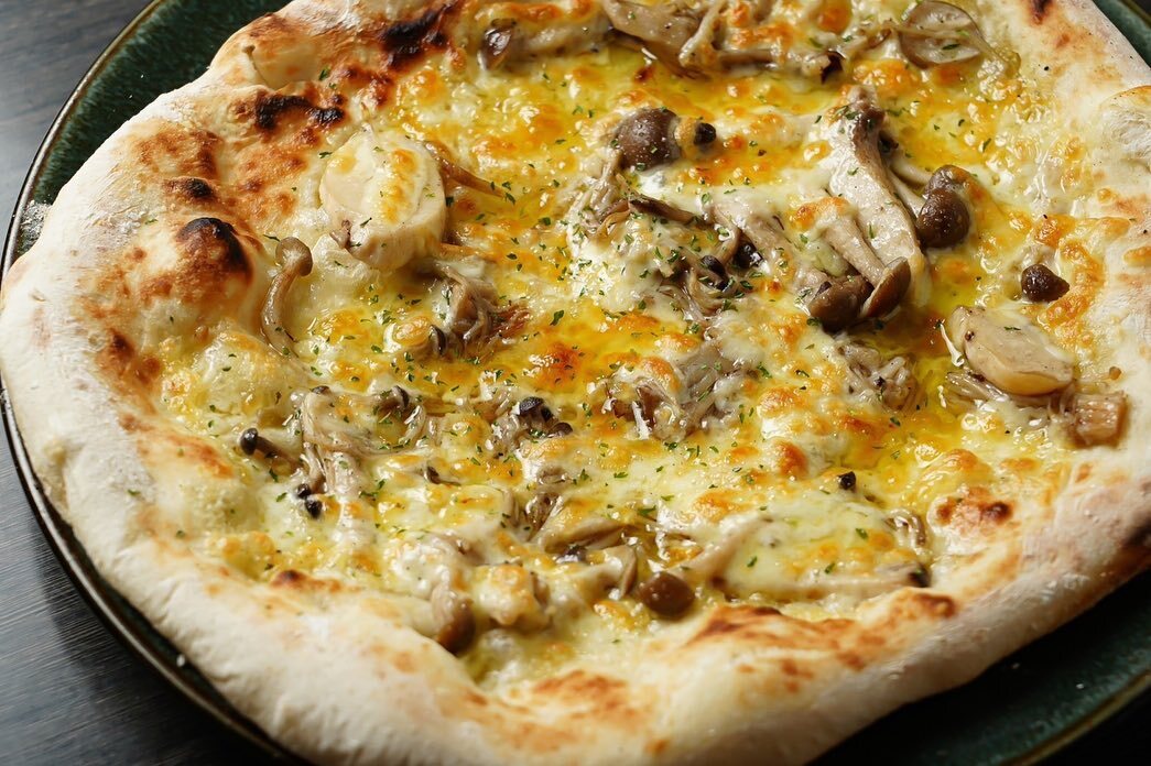 しめじ、舞茸、平茸etc様々なキノコのオイル漬けを使ったピザです。石窯で焼き上げることで、キノコの香りがたち、チーズとの相性も最高です^_^