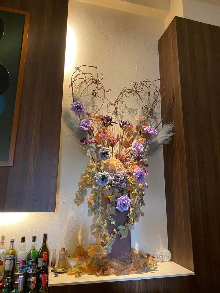 天井が高いのでお花自体も大きなものになるのでなかなか圧巻で来られたお客様からも喜んでいただいてます^_^