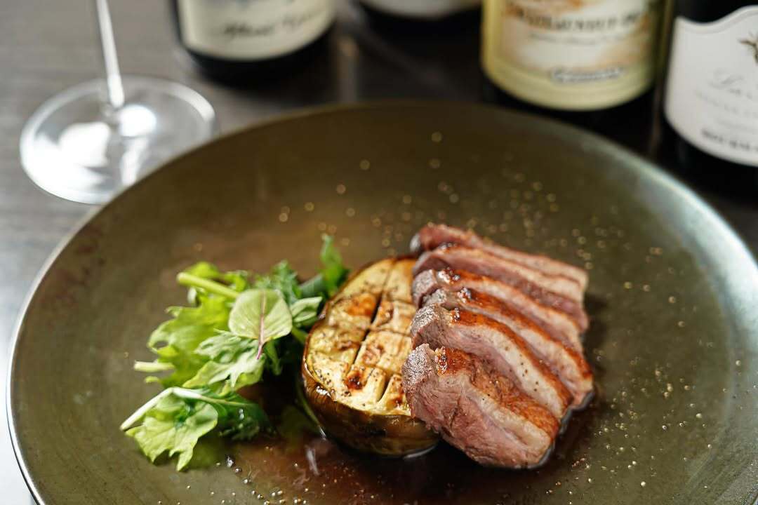 「鴨と秋茄子の窯焼き カシスのソース🦆🍆🔥今が旬!鴨と秋茄子の窯焼きです!200gのマグレ産鴨と美味しい秋茄子を香ばしく窯で焼き上げました🔥✨特製ソースには、ワインの作り手が手がけたスペシャルなカシスのリキュールを使用しています。😍😋