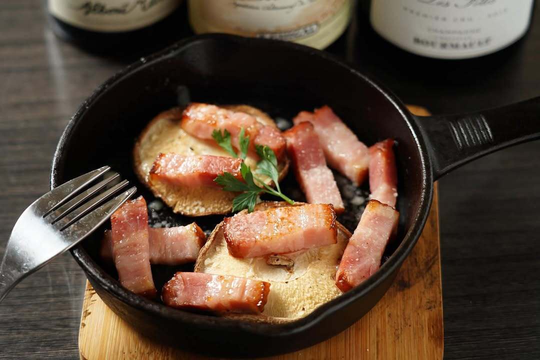 秋の訪れを感じる一皿🍁✨ 新メニュー、ごろごろベーコンとジャンボ椎茸の釜焼きステーキが登場です!ジューシーで肉厚のジャンボ椎茸と、香ばしい厚切りベーコンの組み合わせをお楽しみください。一口食べれば、椎茸のぷりぷりの食感とベーコンの深い旨味が口いっぱいに広がります🍄🥓。是非、秋限定の味覚をご賞味あれ。