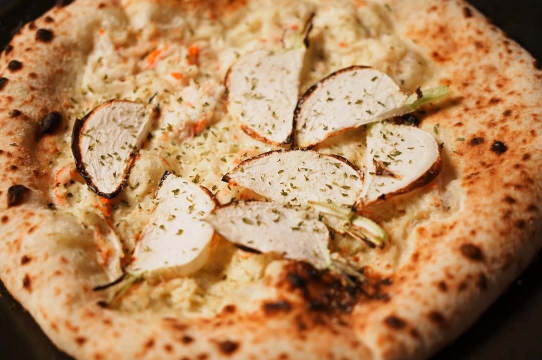 カニの身をほぐし入れた特製クリームソースと旬のカブを使ったピザで、カニの旨みとカブのほっくりした甘みが相性抜群です🦀🥛寒い冬の夜に暖まるディナーをぜひ🥂✨☃️