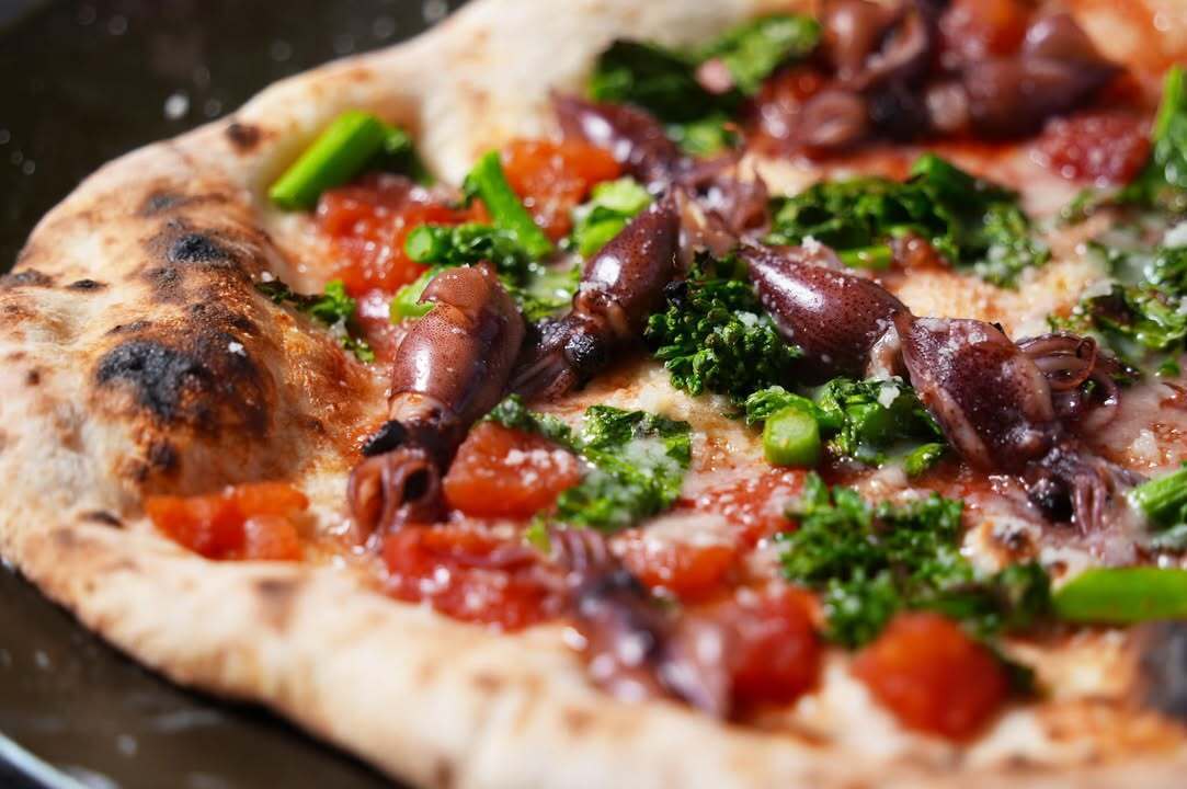 Combining the flavor of firefly squid with the bitterness of rape blossoms and spicy arrabbiata sauce.