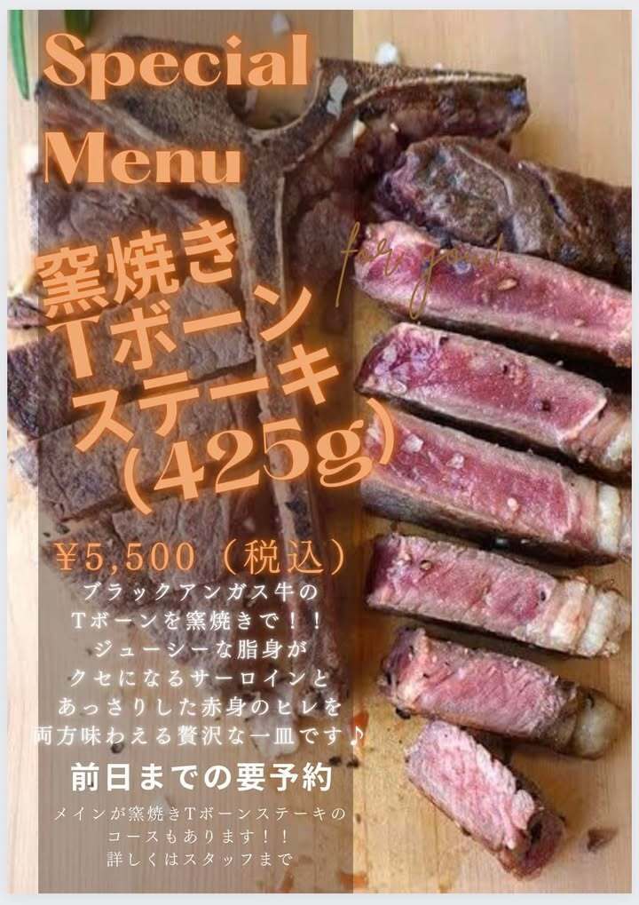 メインが窯焼きTボーンステーキのコースもございますのでそちらもぜひ✨✨
