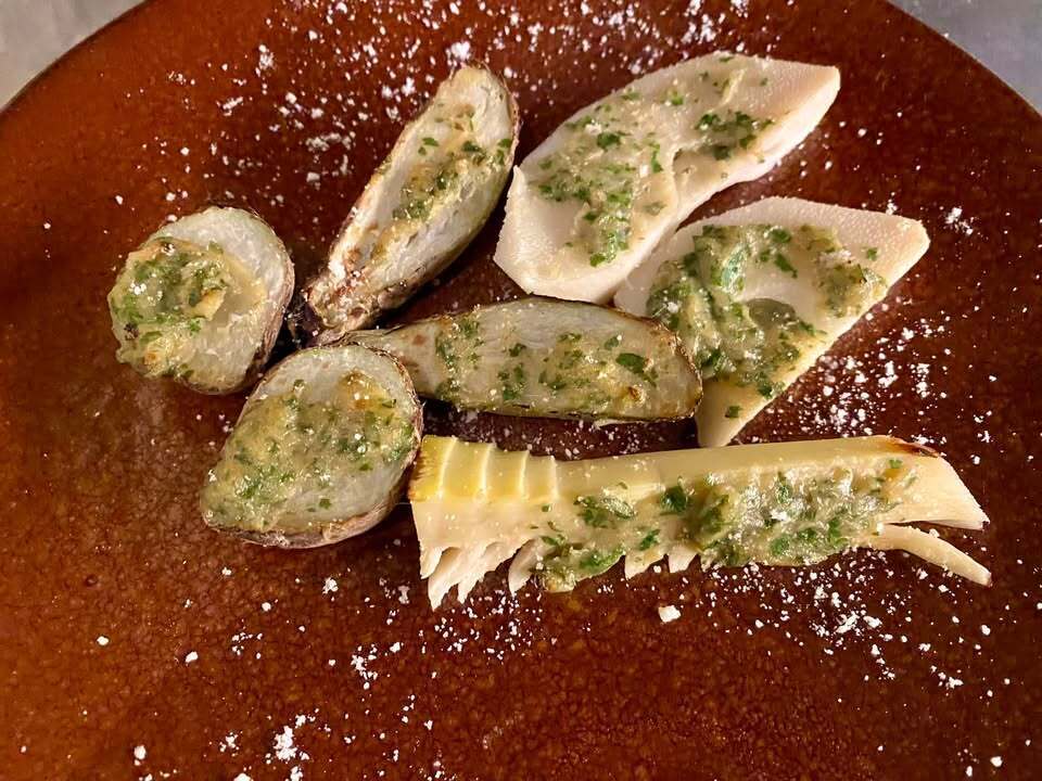 Kiln-roasted Saijo bamboo shoots, Japanese pepper miso dengaku