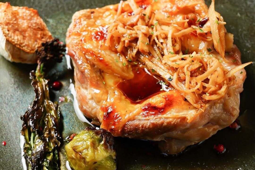 🍂✨当店自慢の「皮はパリパリ!鶏もも肉の窯焼き200g」をぜひご賞味あれ。丹波産の新鮮な鶏肉を石窯で焼き上げ、パリッとした皮と中はジューシーな逸品。はり生姜と中国醤油で味のアクセントをつけたソースとの絶妙なハーモニーをお楽しみください🍴💖